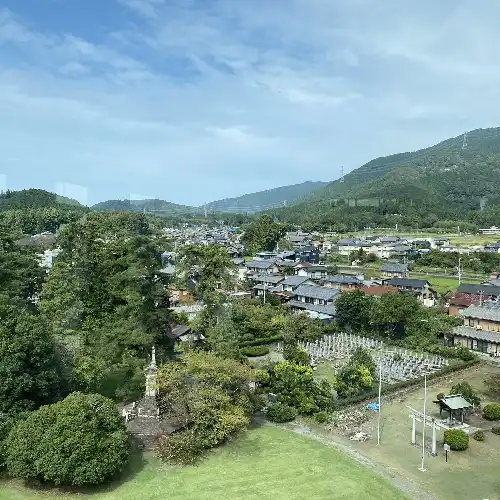 中央やや右奥の幟が立っているところが笹尾山・石田三成陣跡